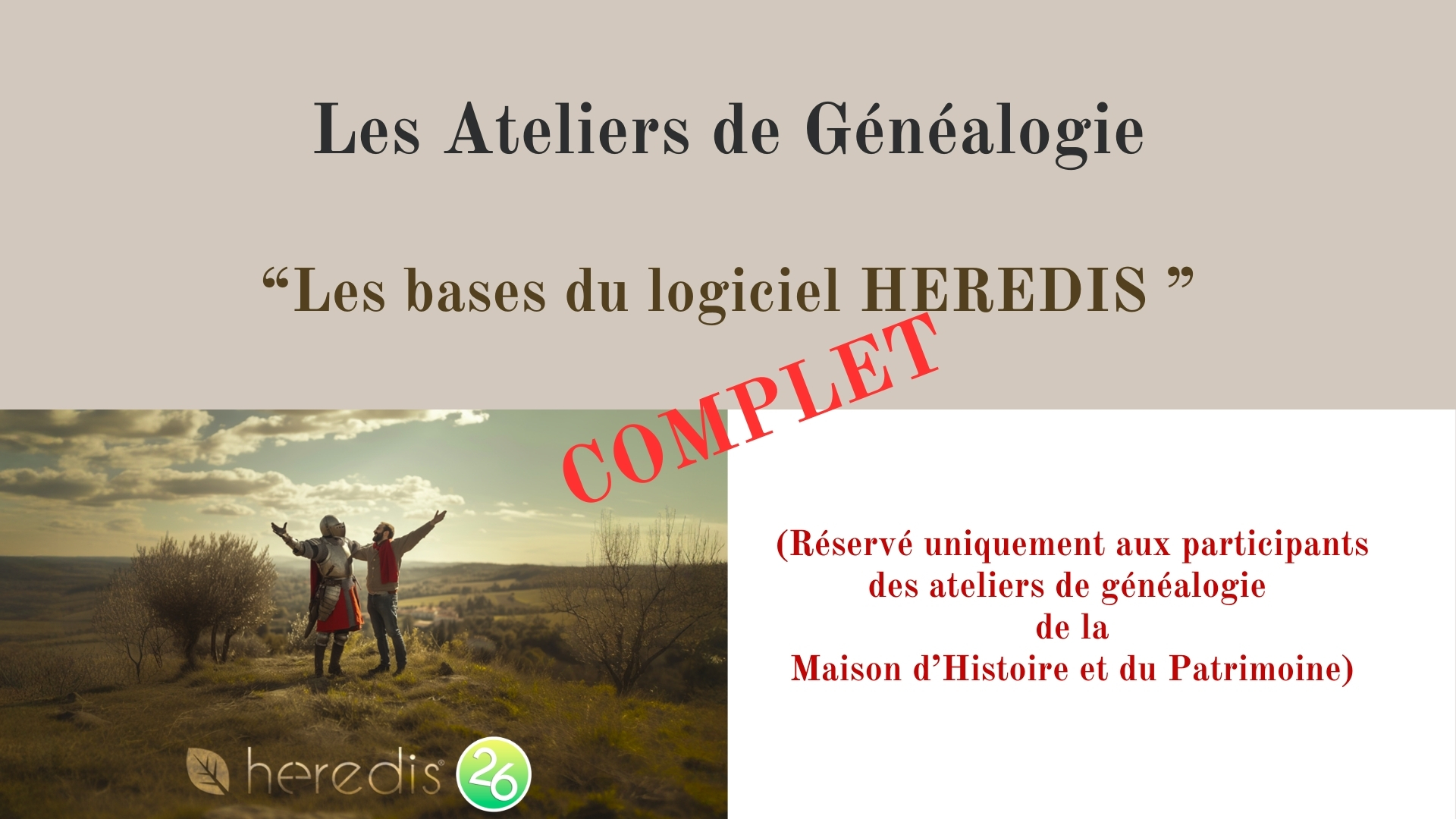Maison d'Histoire et du Patrimoine 18 Rue Colbert, St Maximin la Ste Baume, FranceCOMPLET CE JOUR - PROCHAINE DATE LE 14 AVRIL 2026 Suite à de nombreuses demandes des participants aux ateliers de généalogie de la MHP et utilisateurs du logiciel HEREDIS, une formation sur quelques fonctionnalités est prévue ce jour. Au programme : Comment paramétrer la barre de tâches, Saisir à partir d'un acte, Doublons et fusion, […]